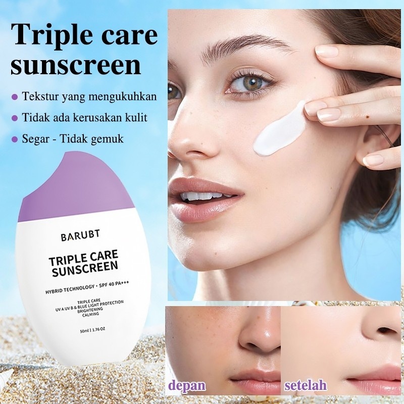 BARUBT - SUNSCREEN 3 IN 1 - ANTI UV + LEMBAB + NON GREASY, UNTUK WAJAH & BADAN, SPF 50 PA+++ 50ML
