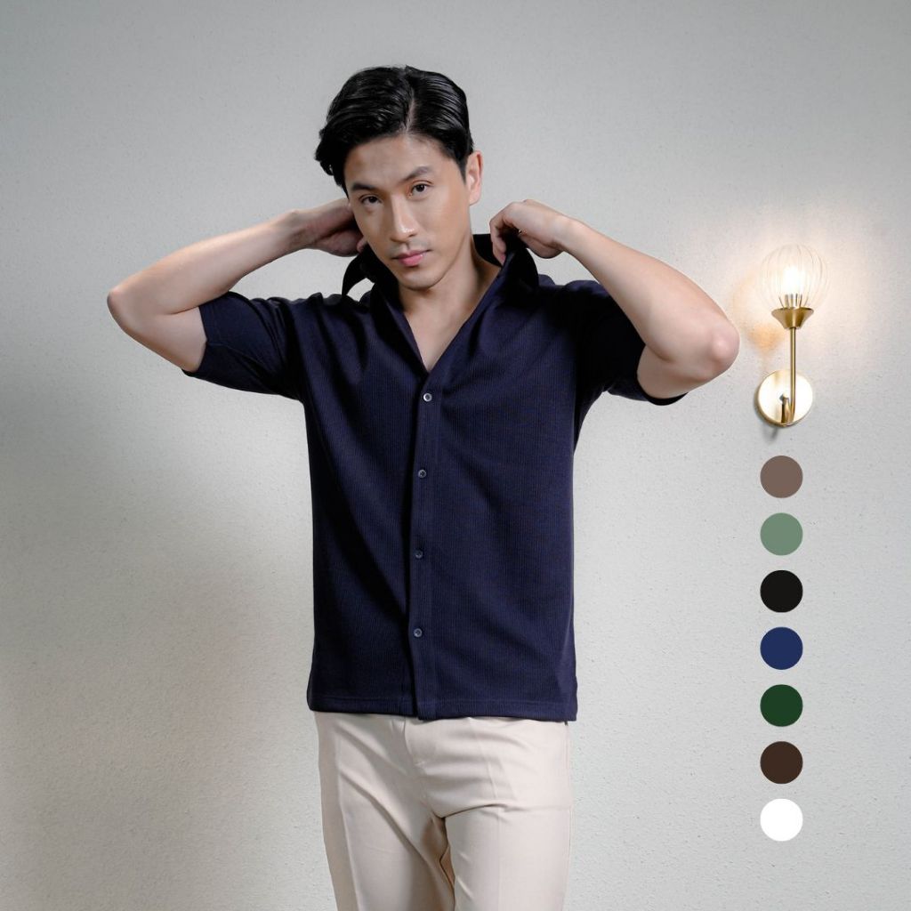 Cupachino Double Knit Kemeja Pria 2-Way Stretch Lengan Pendek