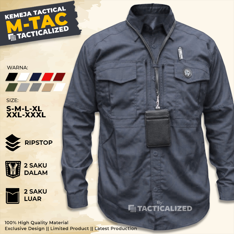 Kemeja Tactical Pria Lengan Panjang M-TAC RIPSTOP Baju Kerja Lapangan