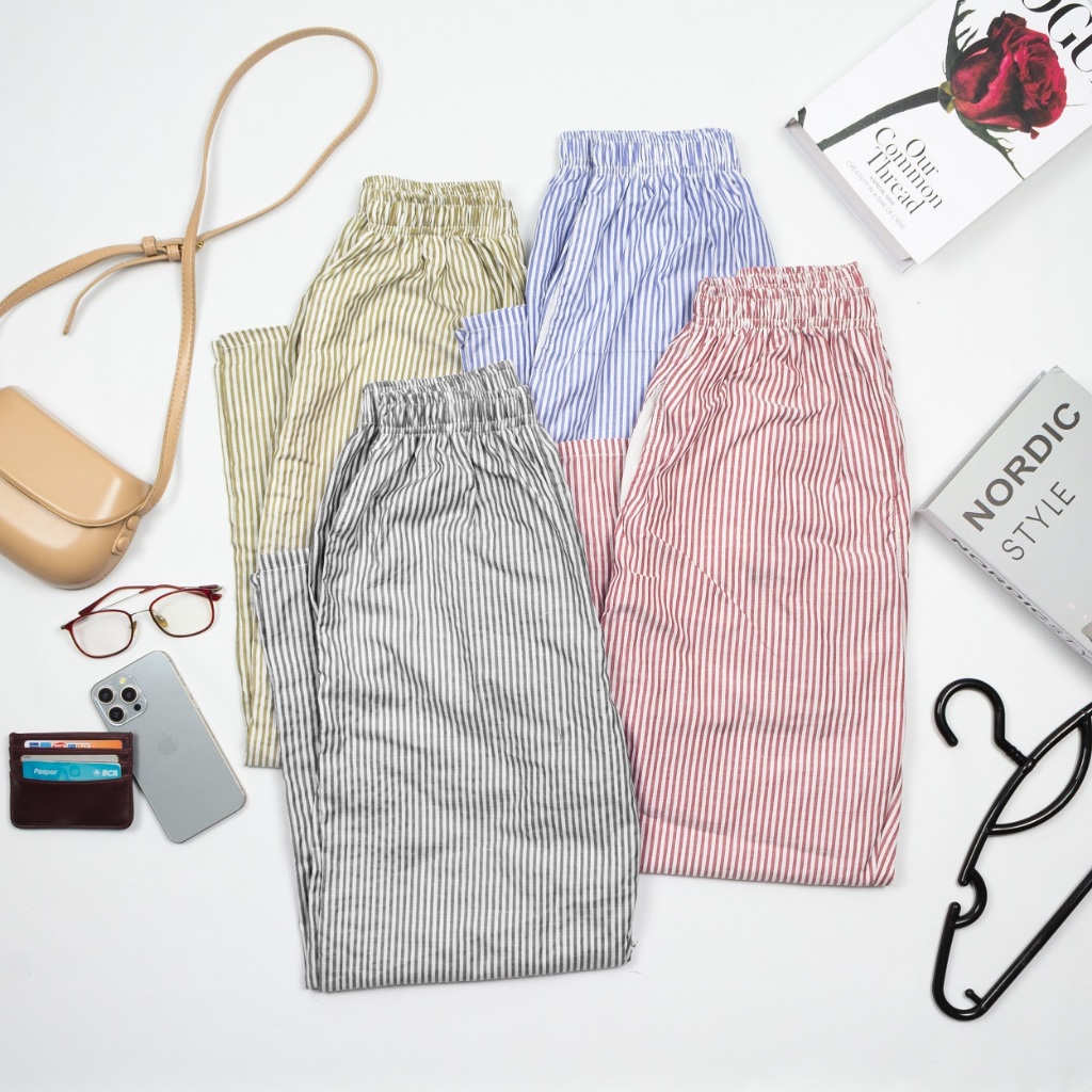 Lookback Celana Panjang Wanita Motif salur Casual Long Pants