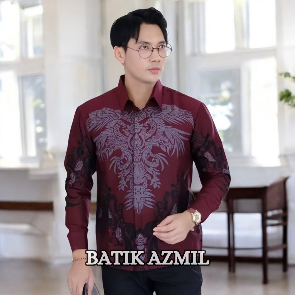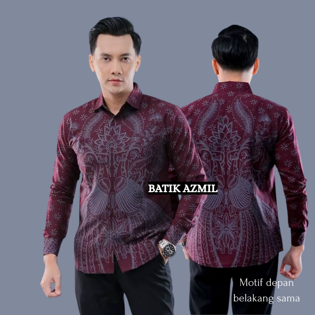 Batik Pria Lengan Panjang BATIK AZMIL motif KERATONAN Kode 003 size M L XL XXL Reguler