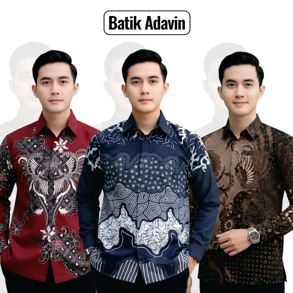 Batik Adavin Kemeja Batik Cowo Warna Burgundy Lylac Navy Adem Lembut Batik Lengan Panjang Exclusive
