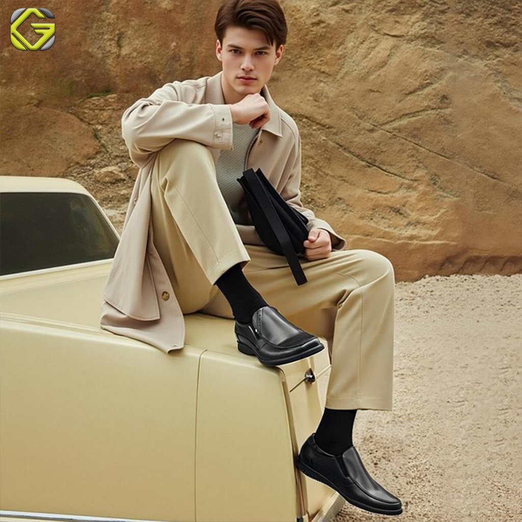 GVL Geovelli G1940 Oxford | Sepatu Pantopel Pria Hitam Kulit Kerja Kantor Dinas Guru PDH Dishub