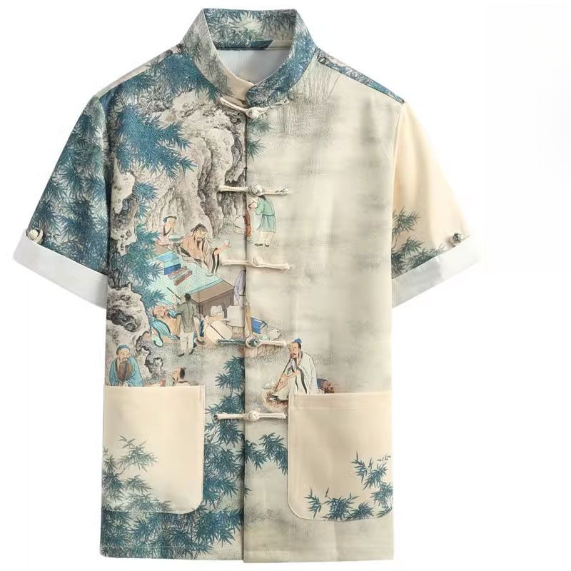 New Men's Short-Sleeved Shirt/Chinese Style Fashionable Print Shirt