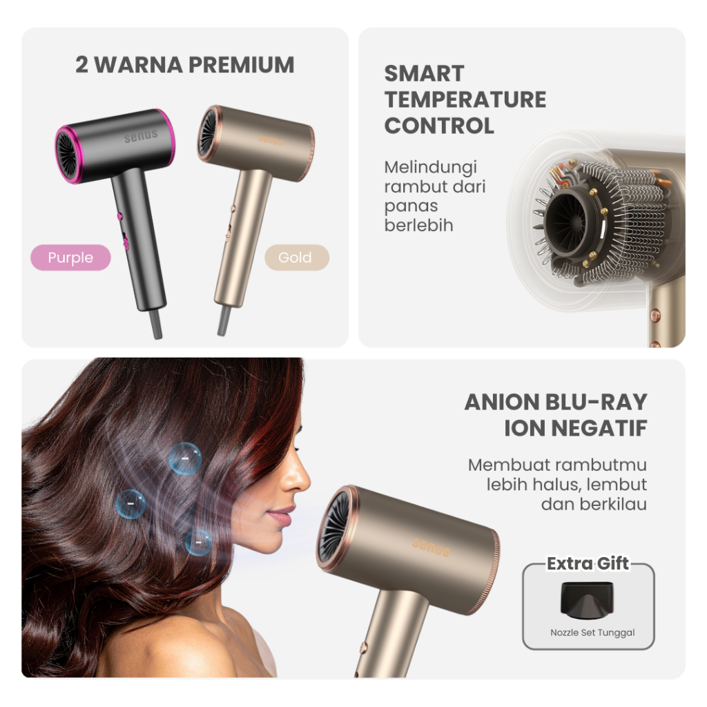 Senus Hair Dryer Pengering Rambut Anion Salon Haircare hot wind Ionik 850W