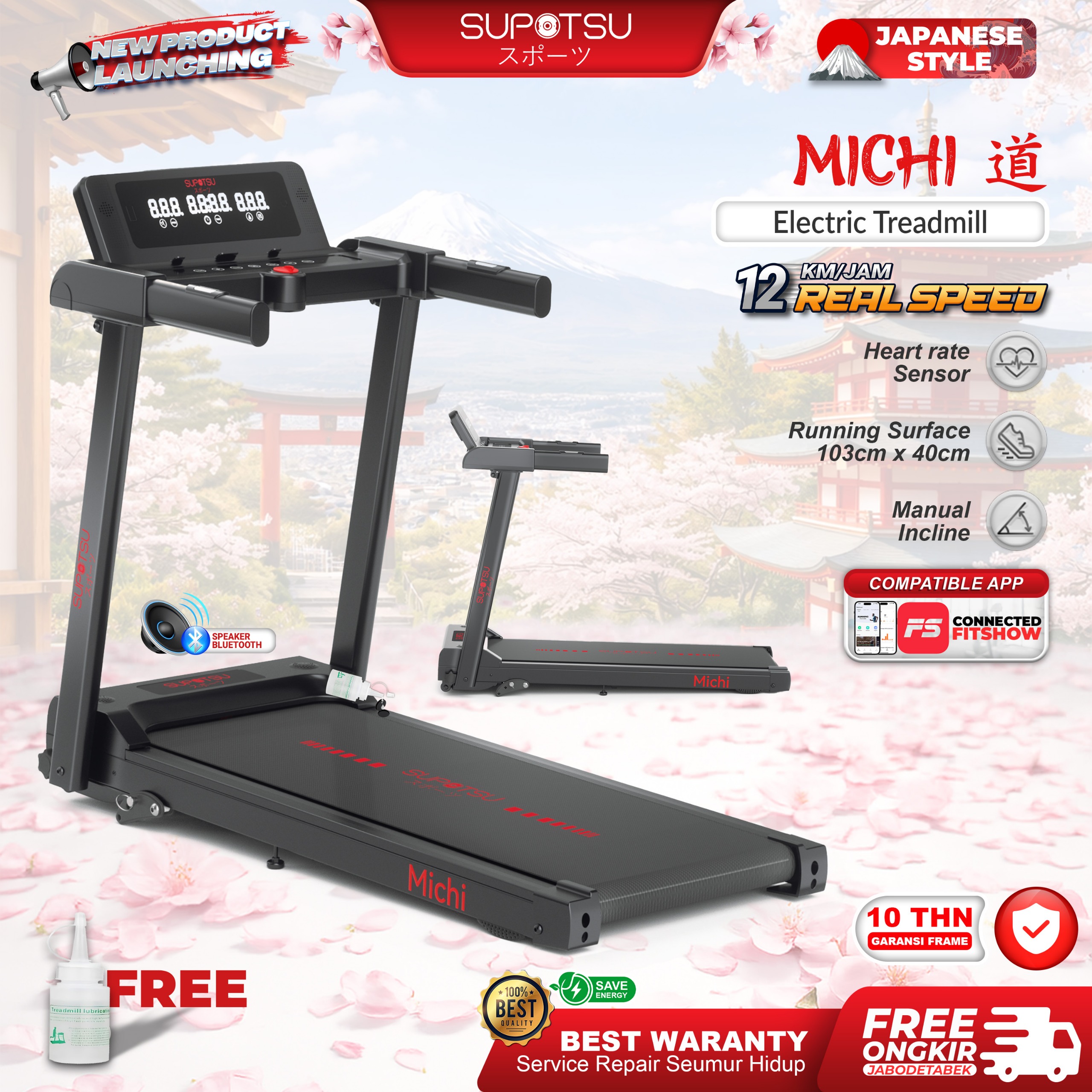 SUPOTSU Michi Treadmill Listrik Treadmill Portable Treadmill Multifungsi Treadmil Lipat Treadmill Electric Low Watt Alat