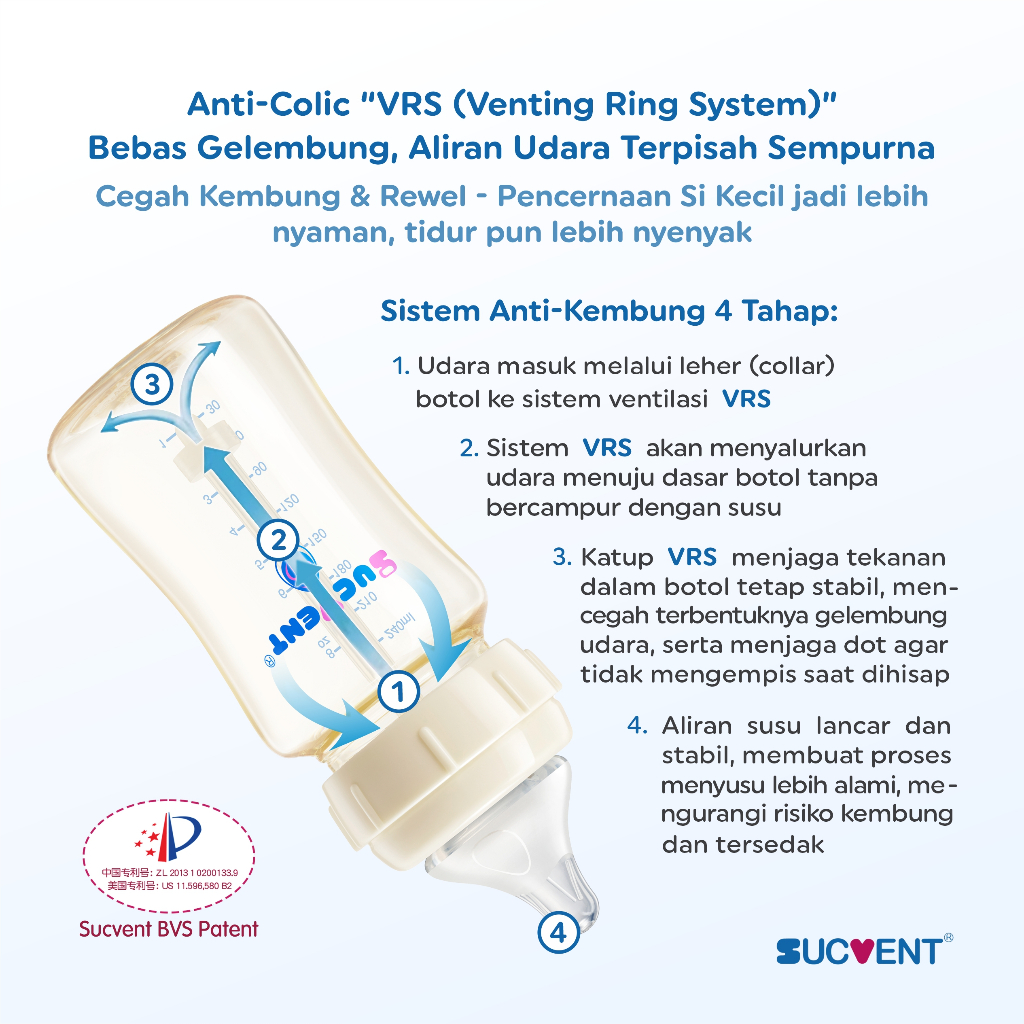 SucVent Non-Bubble & Anti-Choking Bottle PPSU 150ml / 240ml / Botol Susu Bayi Anti Kolik & Kembung - YG5605