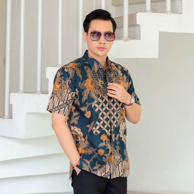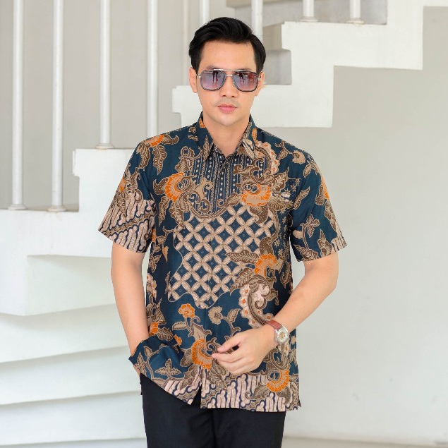 Kemeja Batik Mawastri Motif Kawung Kembang Premium Lengan Pendek Furing Jahit Tailor Formal Kasual