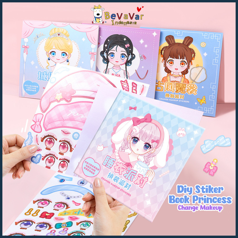 BEVAVAR Buku Stiker Change Makeup Diy Princess Sticker Book