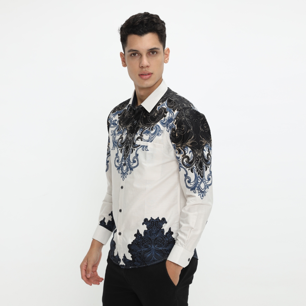 LUIGI RICCIO Kemeja Batik Pria Modern Abstrak Slimfit Casual Kerja Kantoran Sampai 5XL New Arrival White Series