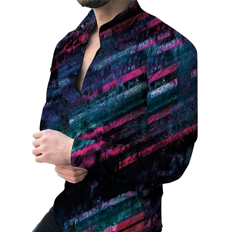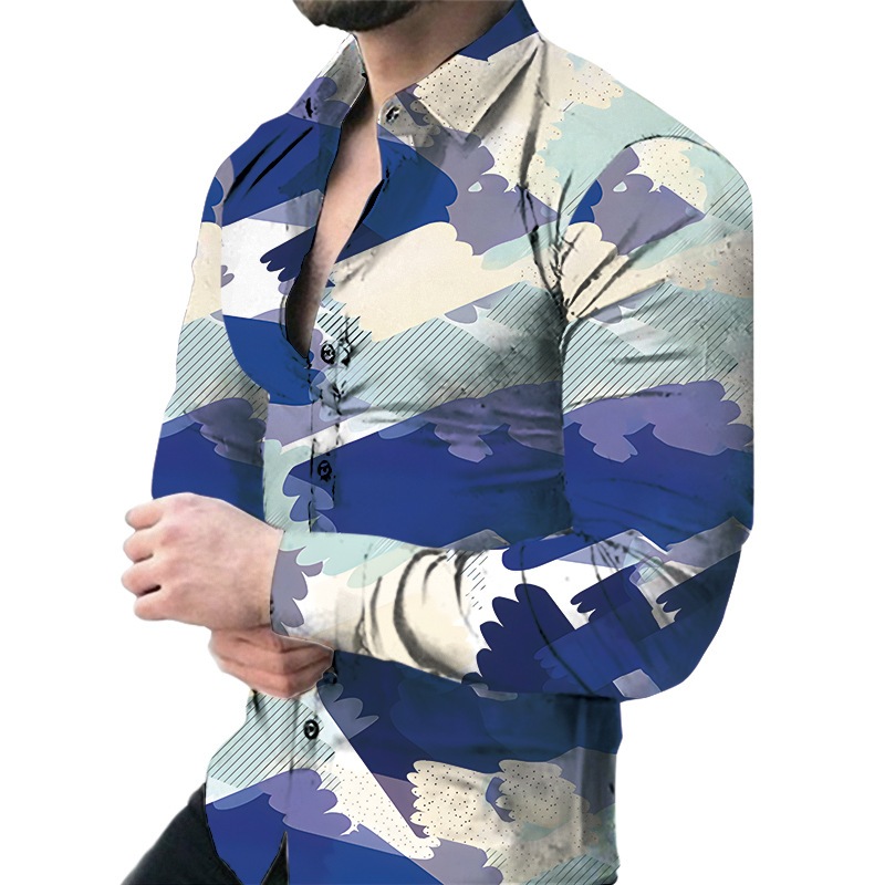 Kemeja Lengan Panjang Motif Cetak Digital Pria Model Baru Kemeja Pria Fashion Kasual