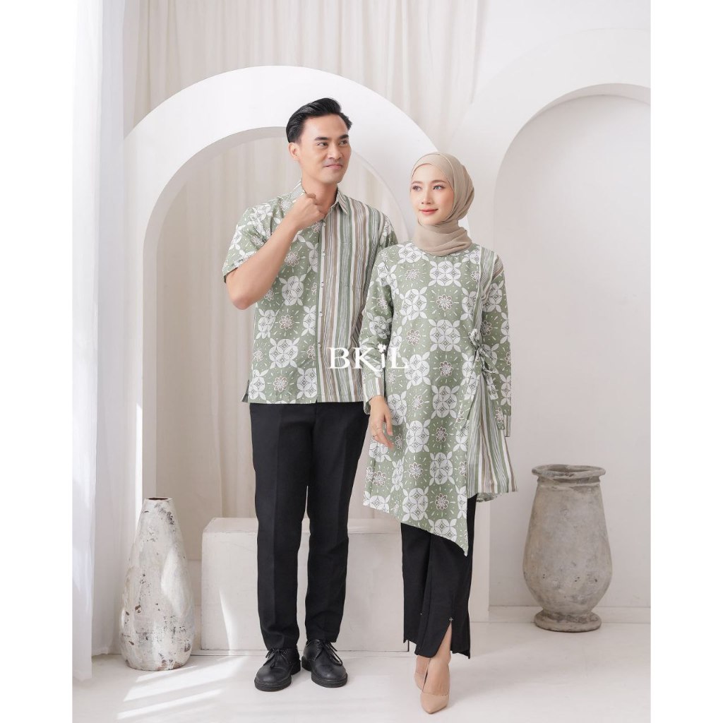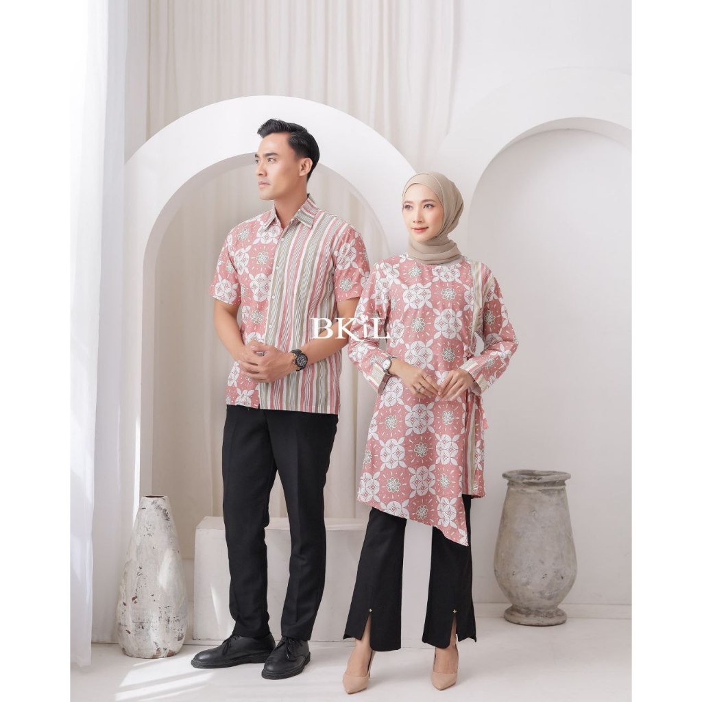 Baju Batik Couple Modern Atasan Batik Kerja Motif Kawung Salur Batik Wanita Modern Formal Style