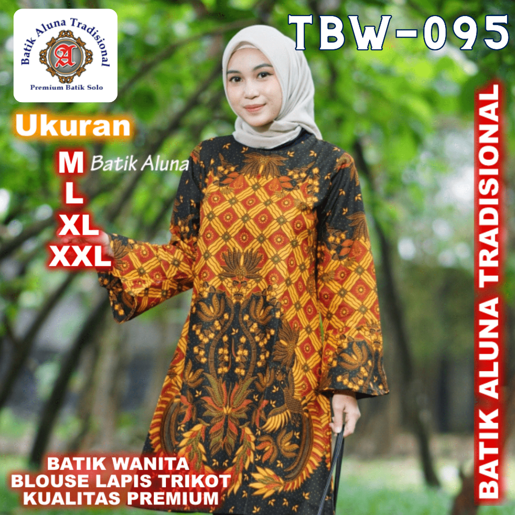 Baju Batik Wanita Tunik Lengan Panjang Full Furing Premium Aluna TBW 095