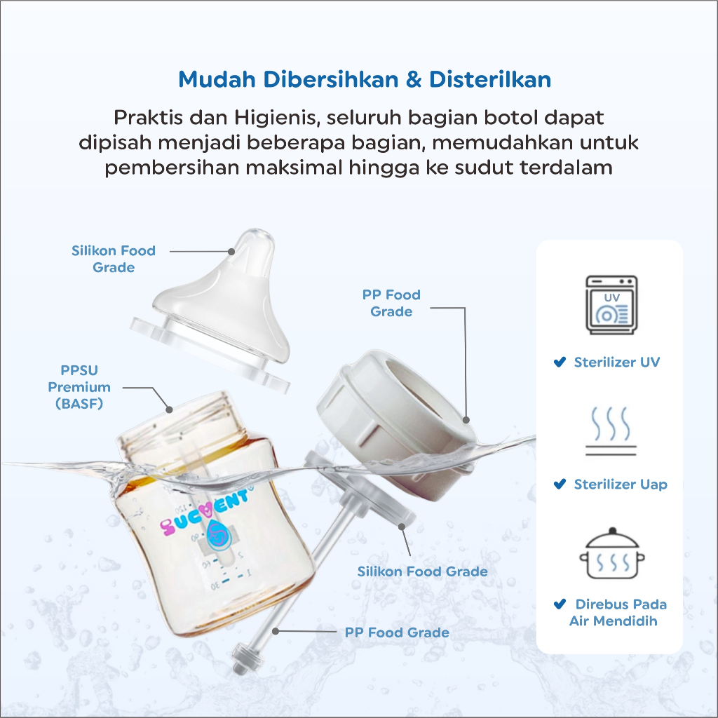 SucVent Non-Bubble & Anti-Choking Bottle PPSU 150ml / 240ml / Botol Susu Bayi Anti Kolik & Kembung - YG5605