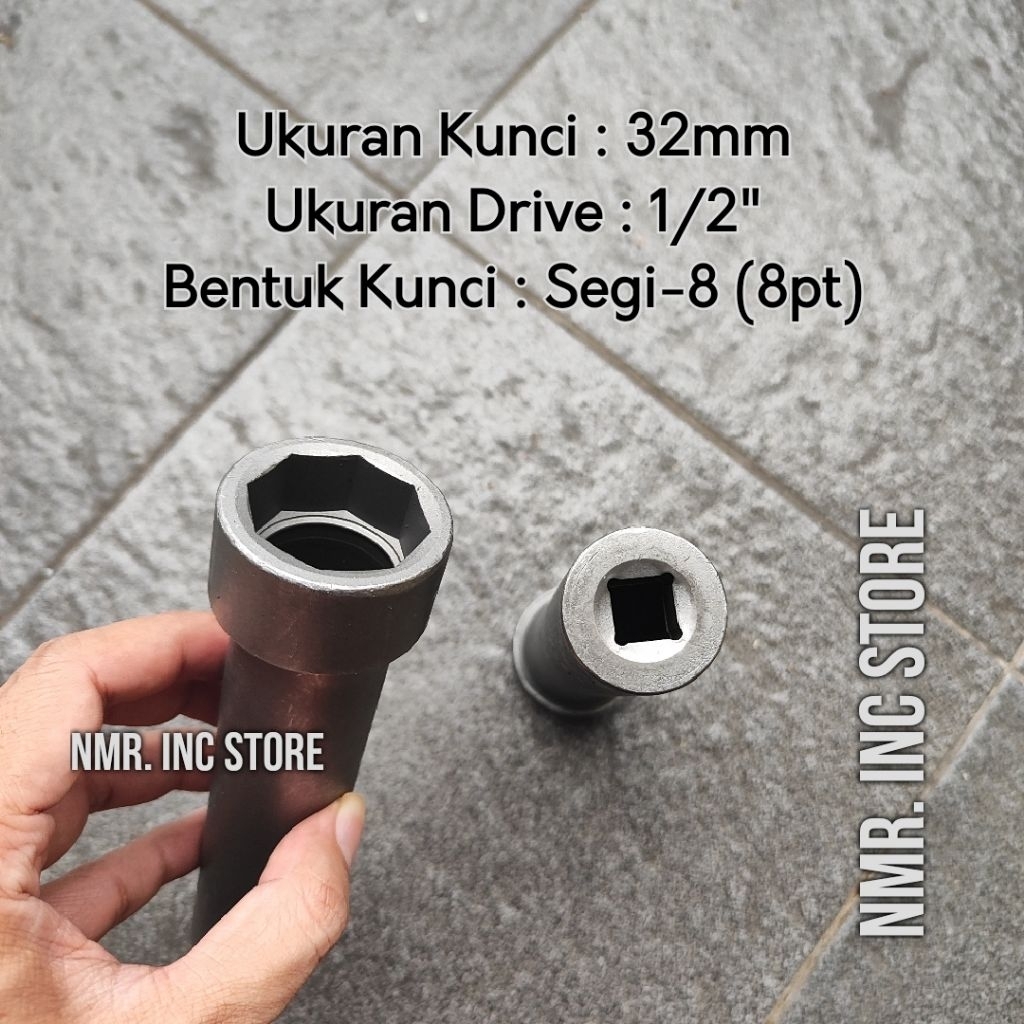 PAKET Kunci Sok 32mm 8pt Deep Shock + Hook 45-52 Untuk Kunci Komstir Honda.