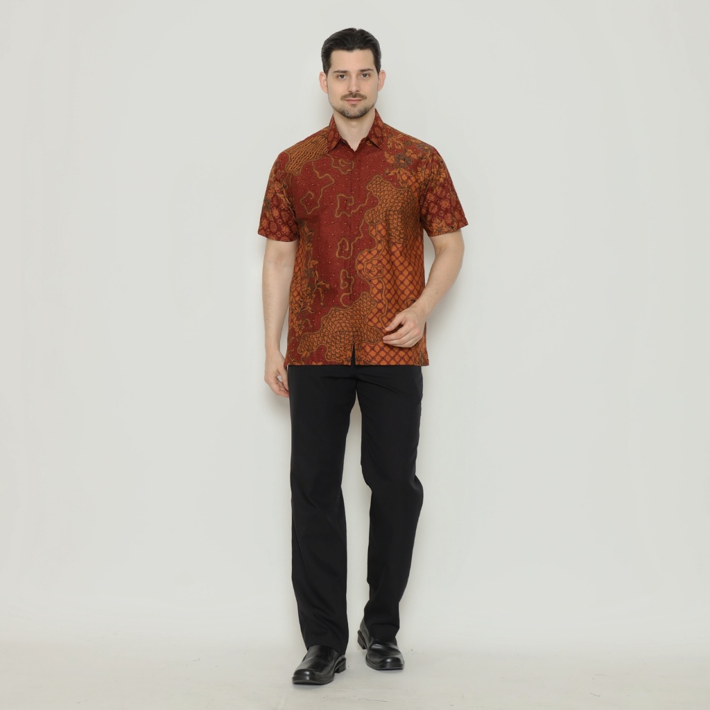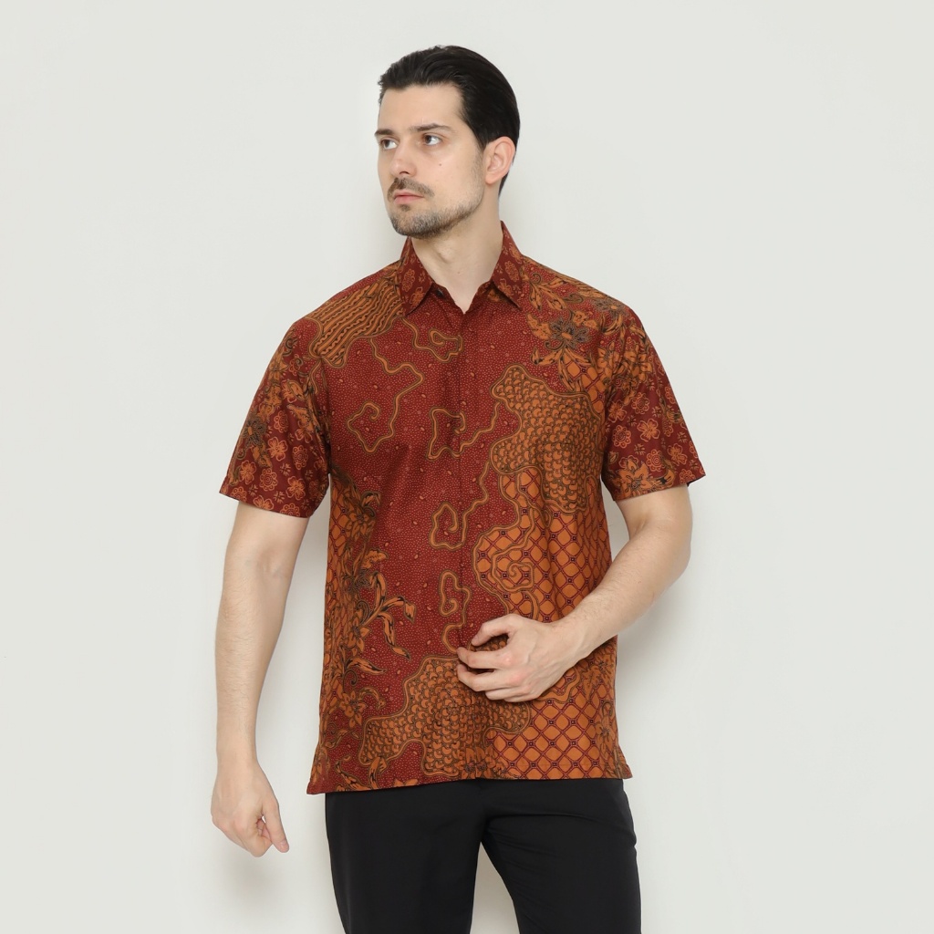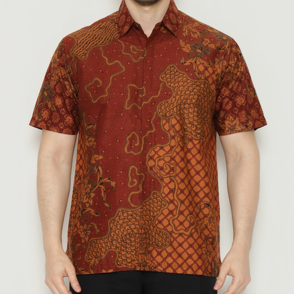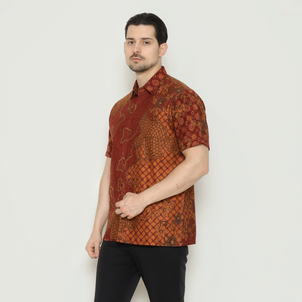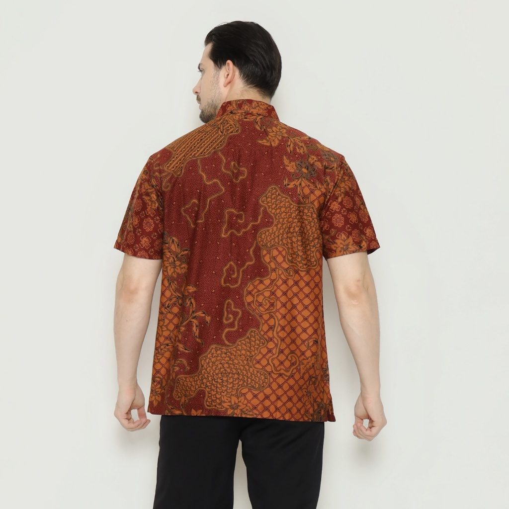 Waskito - Kemeja Batik Pria Lengan Pendek Katun Motif Kawung Tani HB 31811 - Red (merah)