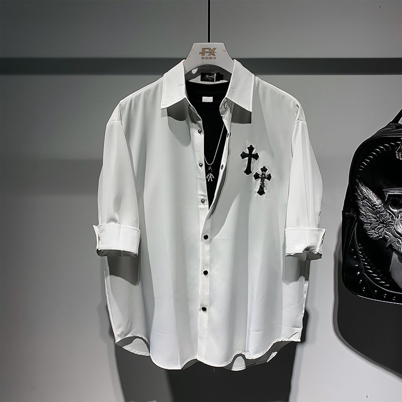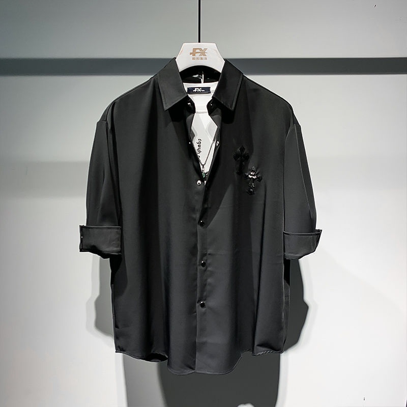 Design sense Korean version trendy men's short sleeved shirt 2023 summer new coat ruffled and handsome high-end men's shirt