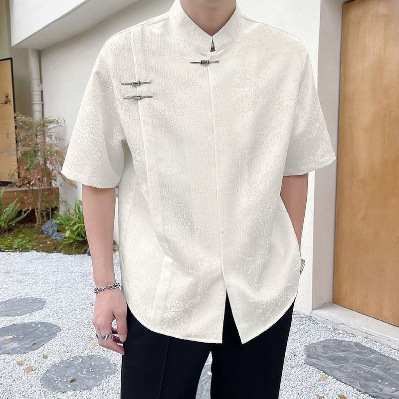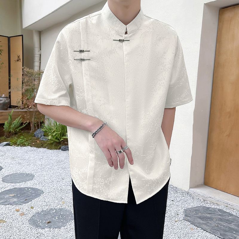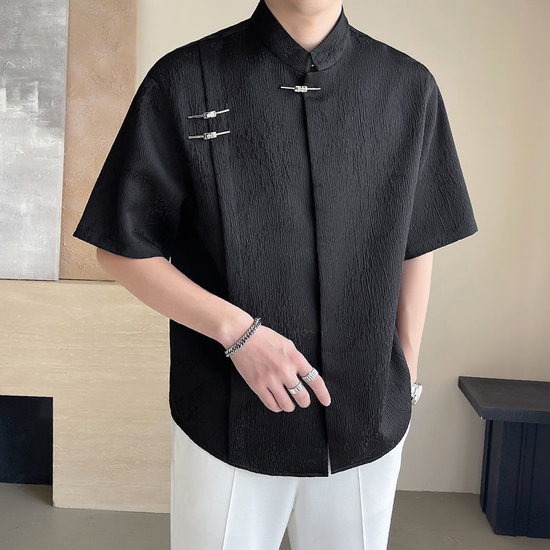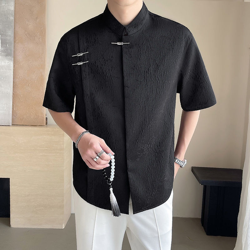 New Chinese Style Short-Sleeved Shirt Men's Summer Fashion Brand Pu Handsome Casual Shirt New Fashion Men's Top Shirt