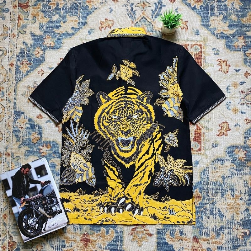 Kemeja Batik Pria Hem Smock Bordir B470 Reguler Fit Motif Macan Kuning Perabu.id