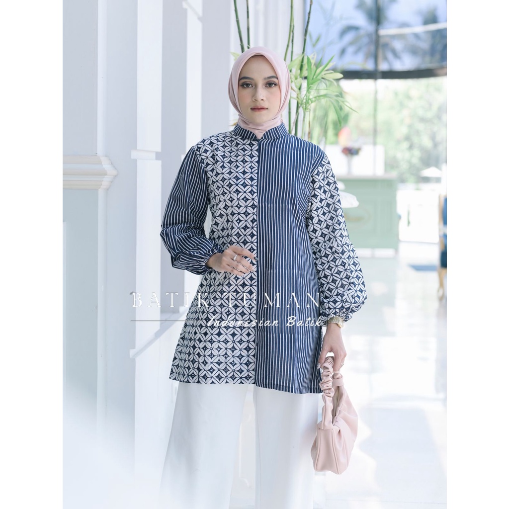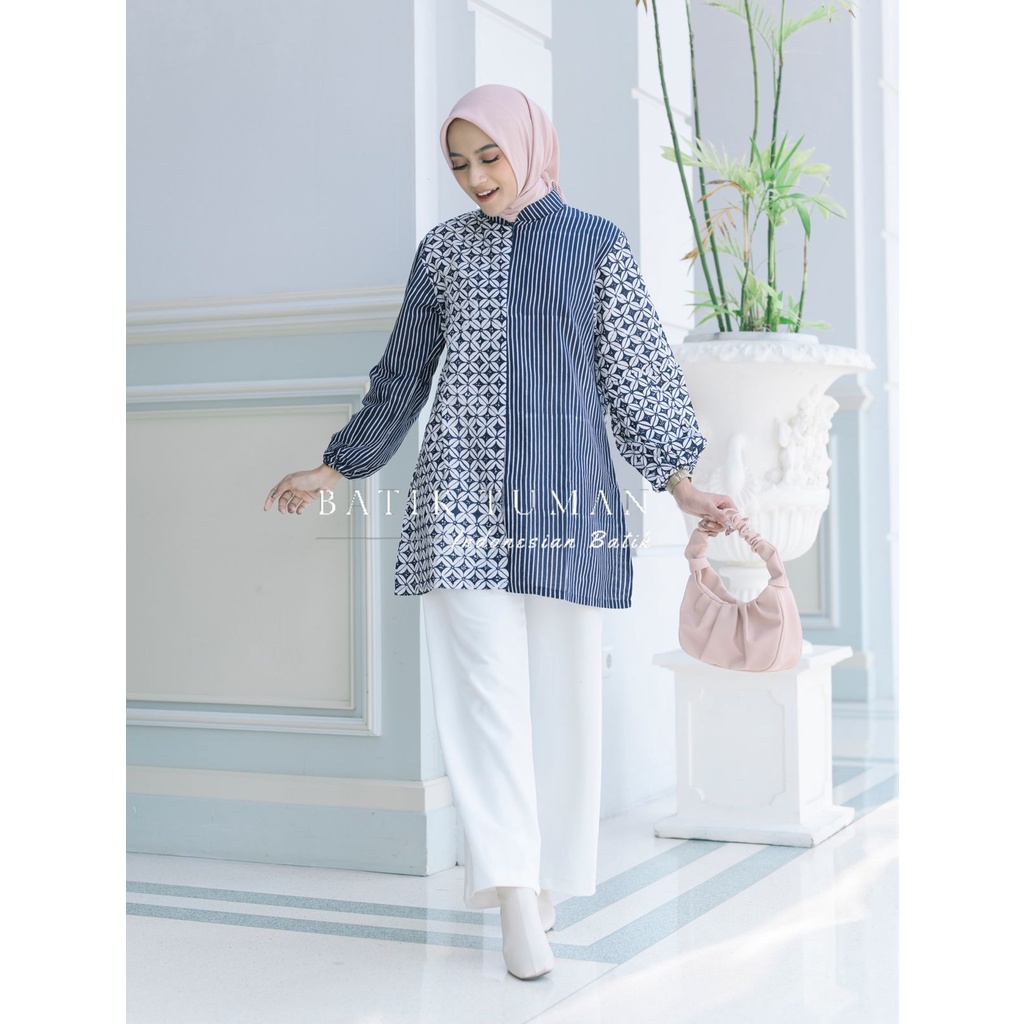 Blouse Batik Kerja KAWUNG SELING NAVY Bahan Katun Primisima Halus Premium Batik Wanita