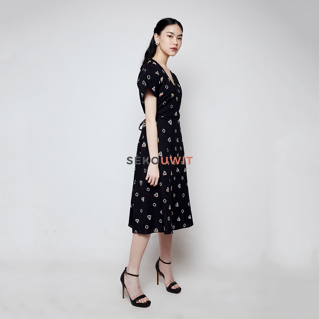 Fressia Jumputan Midi Wrap Dress / Dress Batik Midi Hitam Sekouwit