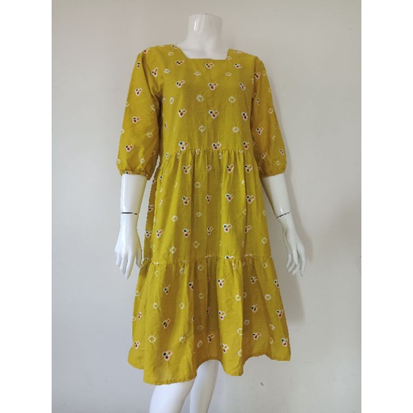 Dress Jumputan Handmade Lengan ¾ Resleting Belakang