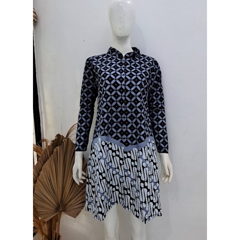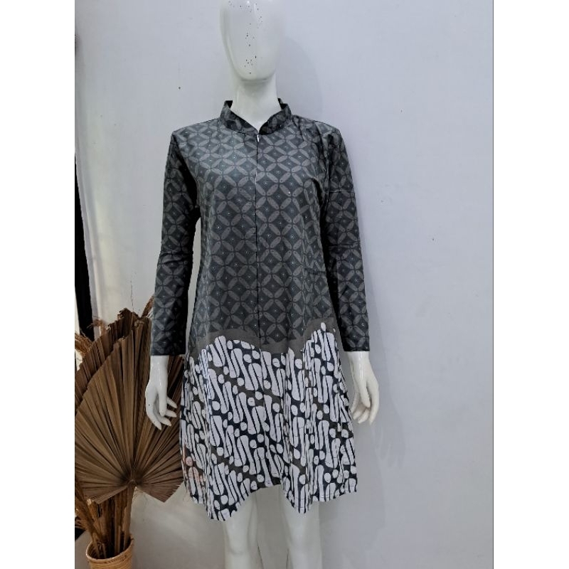 tunik batik kombinasi kawung - tunik kekinian - tunik jumbo