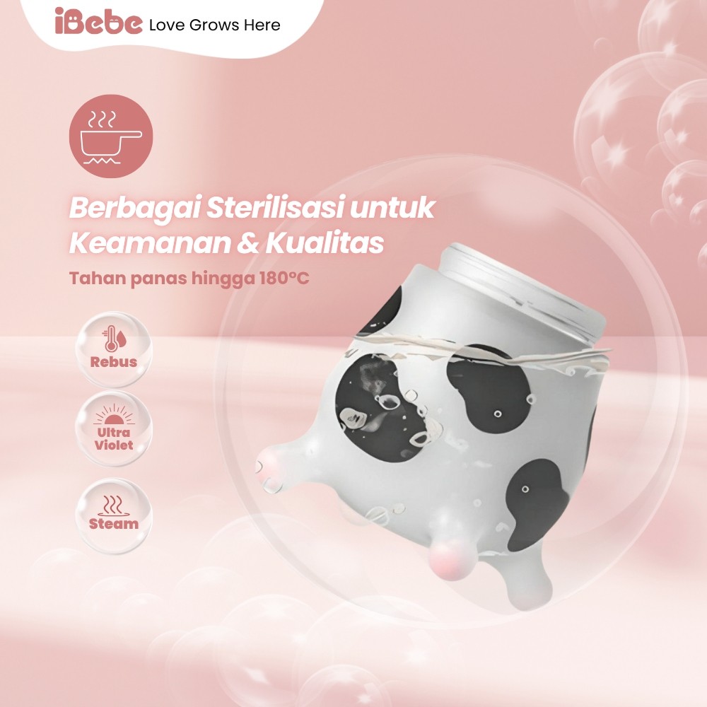 [ibebe Official] Botol Susu Bayi Silikon 150ml – Hitam | Dot Slow Flow 0–3 Bulan | Anti Kolik | BPA Free | Cocok untuk D