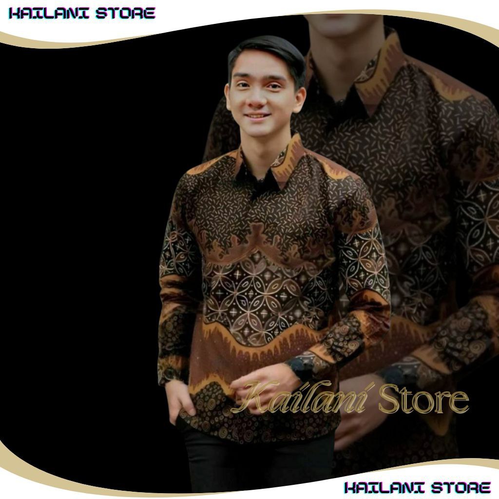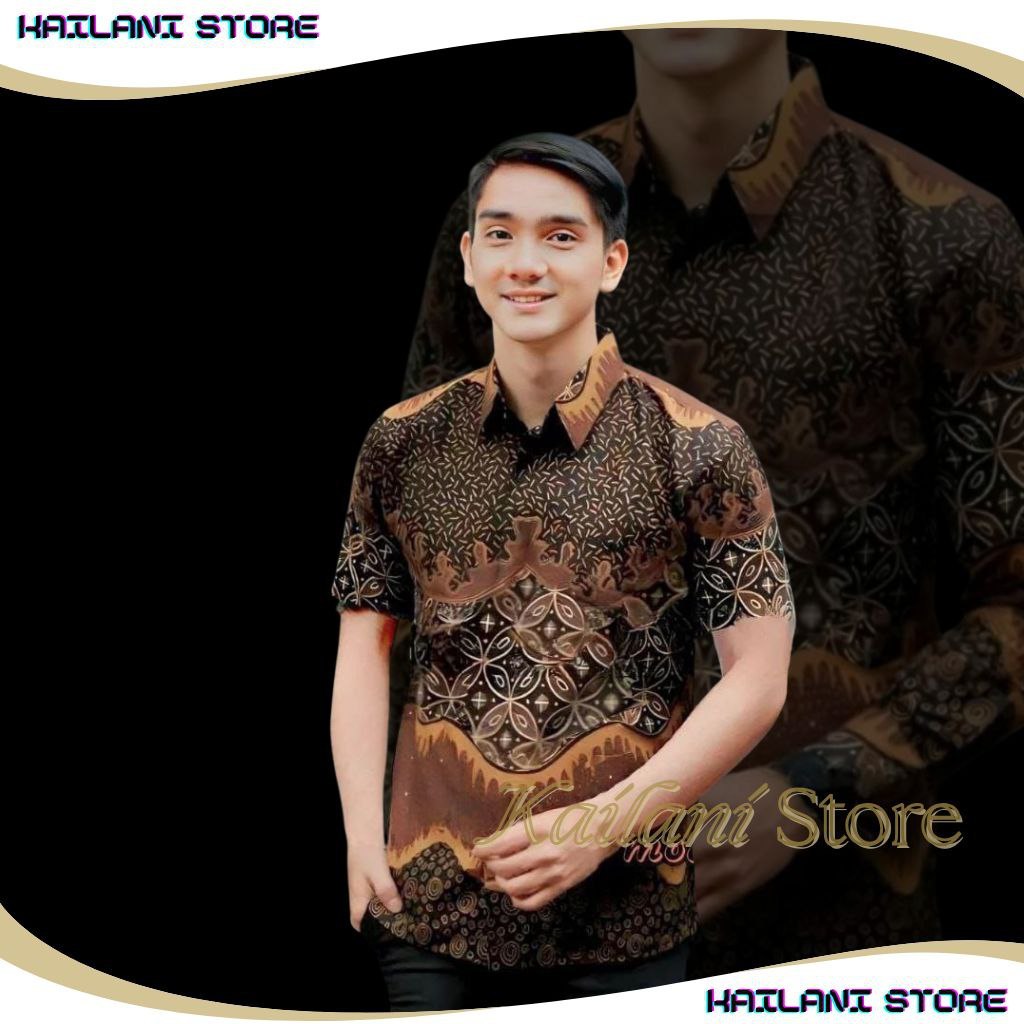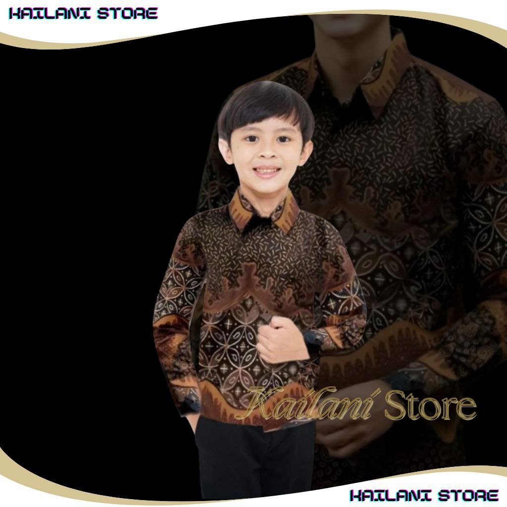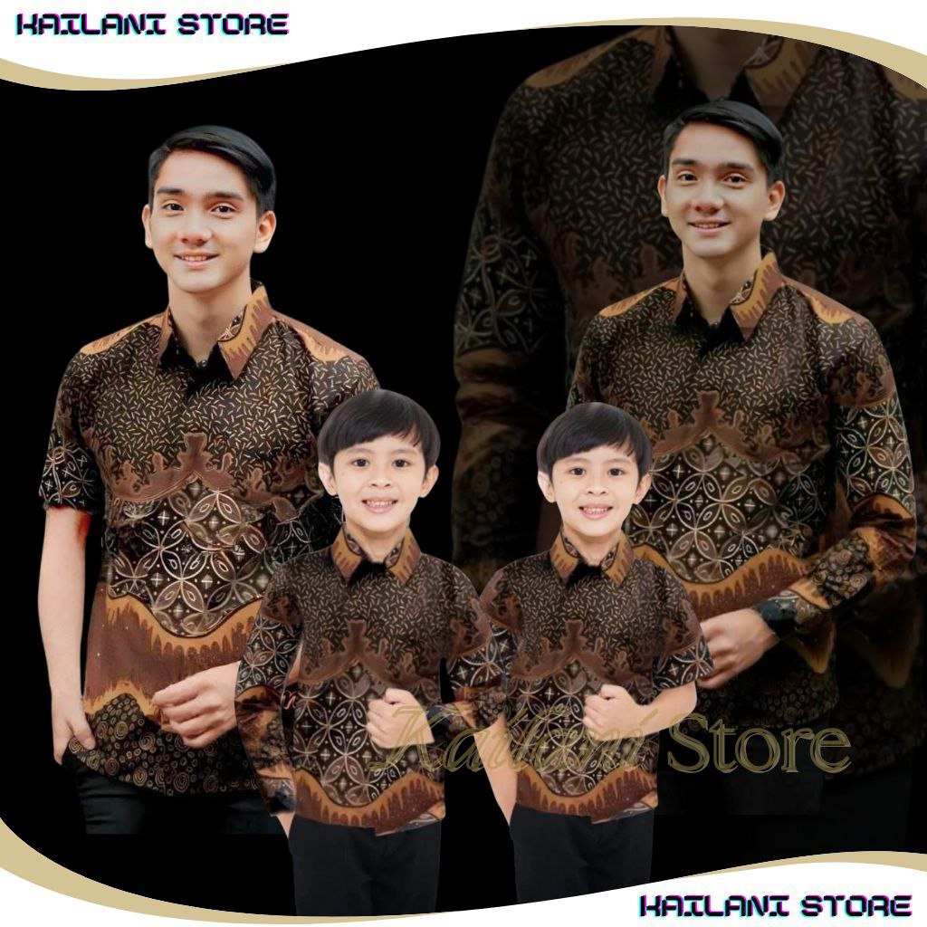 Kemeja Batik Pria Dewasa Lengan Panjang Pendek Couple Batik Ayah Anak Cowok Motif Kawung Coklat
