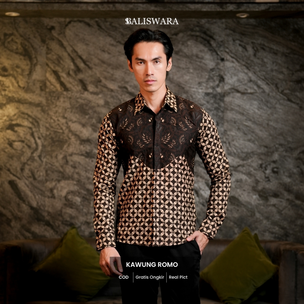 BALISWARA Batik Pria Slimfit Motif KAWUNG ROMO Kemeja Cowok Laki Full Furing Bahan Premium Lengan Panjang Lengan Pendek