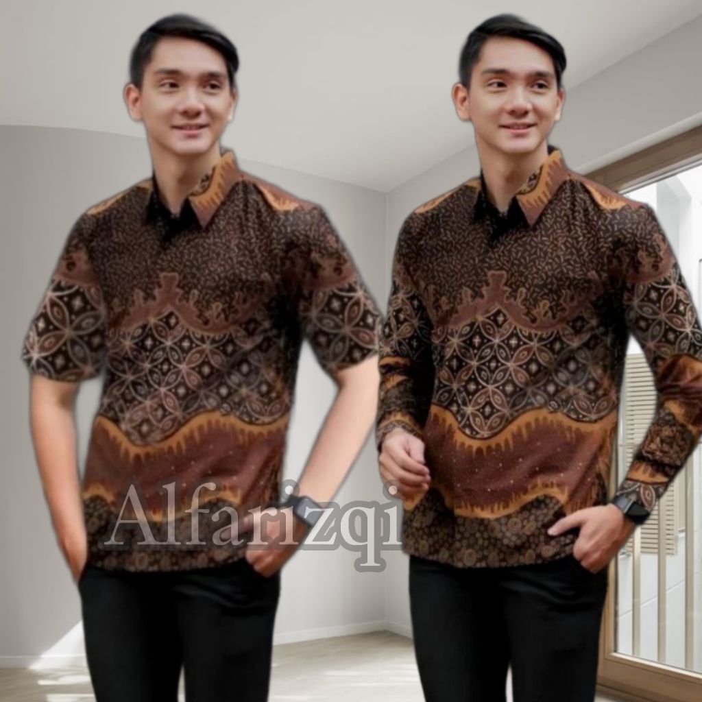 Kemeja Batik Pria Jumbo Big Size M L XL XXL XXXL XXXXL XXXXXL Kemeja Batik Jumbo Lengan Panjang Motif Kawung Warna Terak