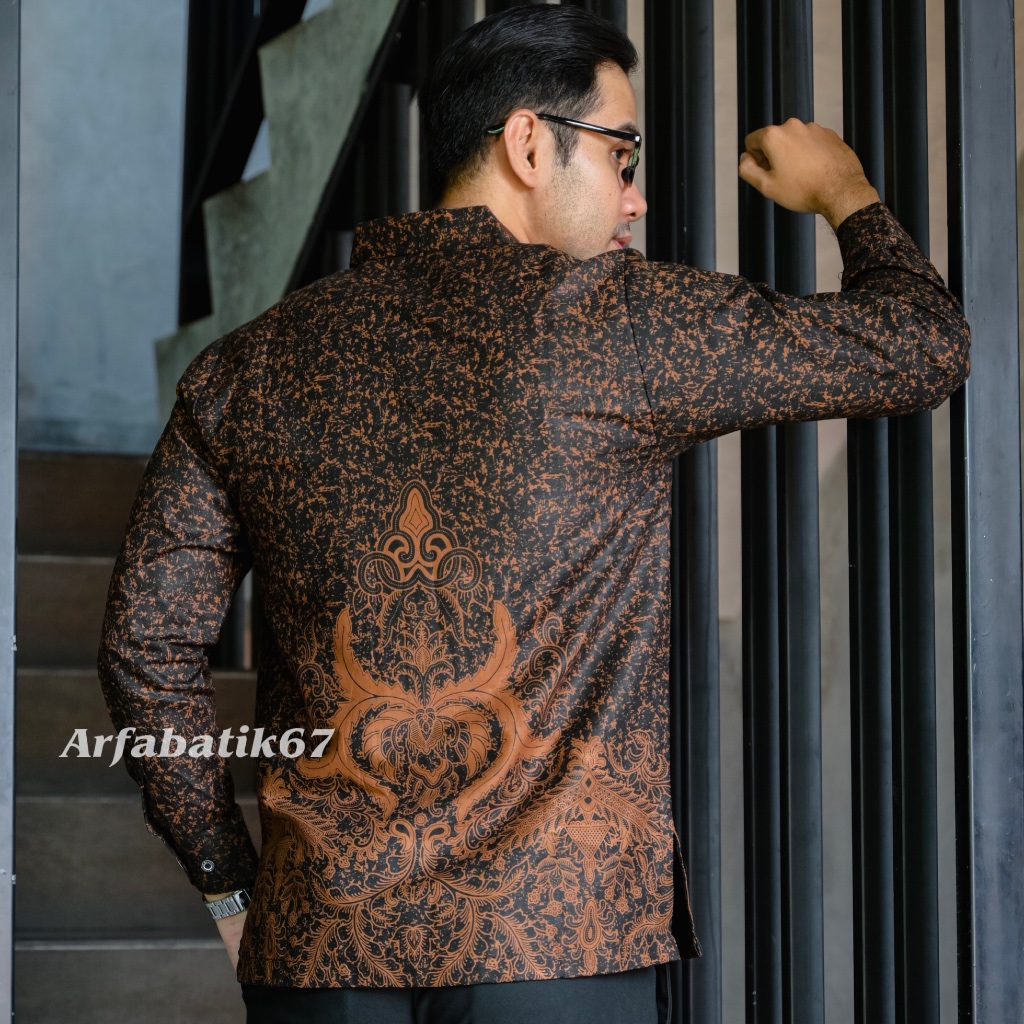REMEKAN SOGAN Kemeja batik pria lengan panjang katun solo lapis furing hero ready seragaman by arfabatik67