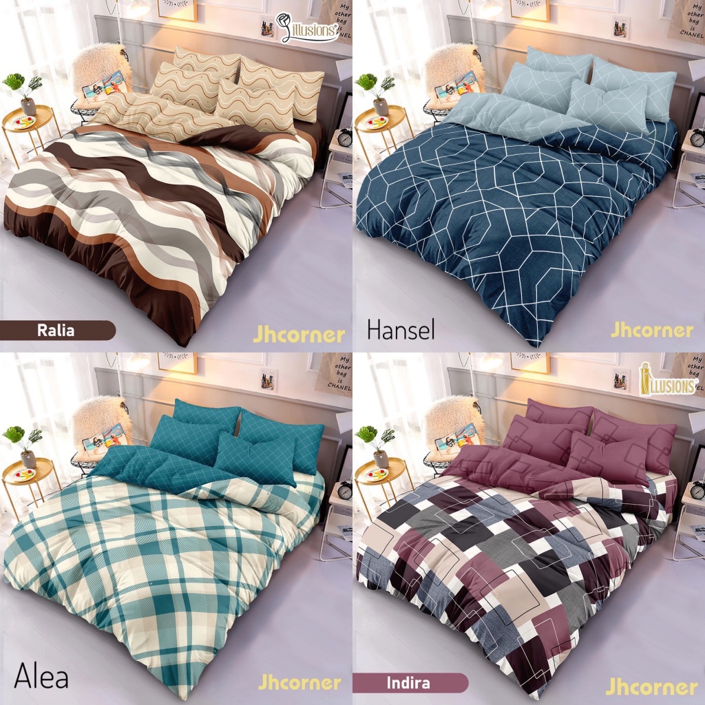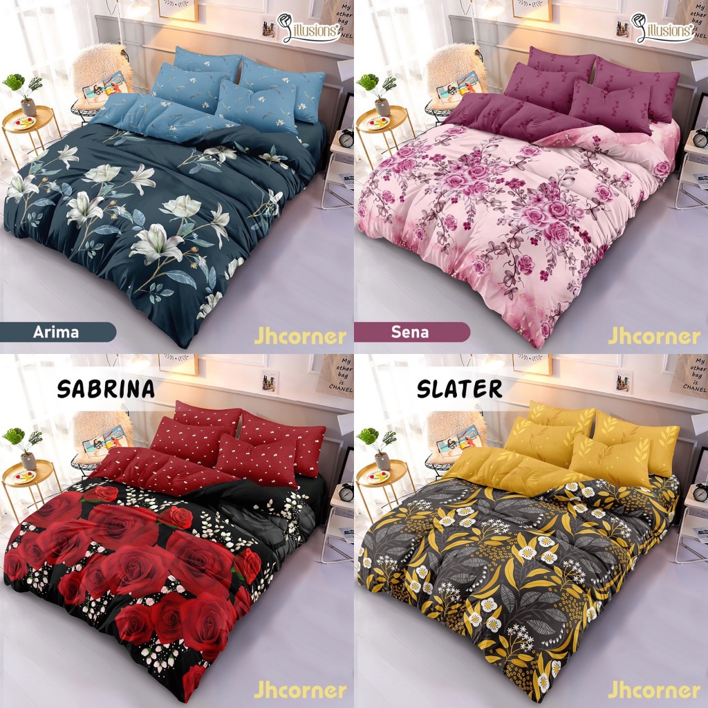 SET BEDCOVER ILLUSIONS SPREI RUMBAI UKURAN 180X200CM 6KAKI KING SIZE MOTIF BUNGA DAN MINIMALIS