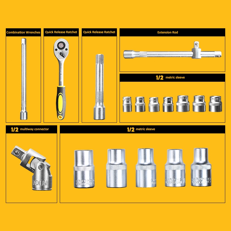 KEELAT 24PCS 1/2 Kunci Sok Set(60HRC)Socket Full Lengkap Socket Tool Kit Pas Ring Motor Kunci Socket Wrench Pas Sok Shoc