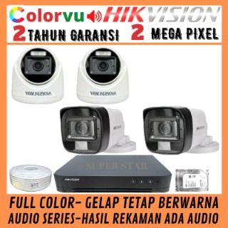 PAKET CCTV COLORVU HIKVISION 4 CHANNEL 4 KAMERA 2MP AUDIO FULL COLOR