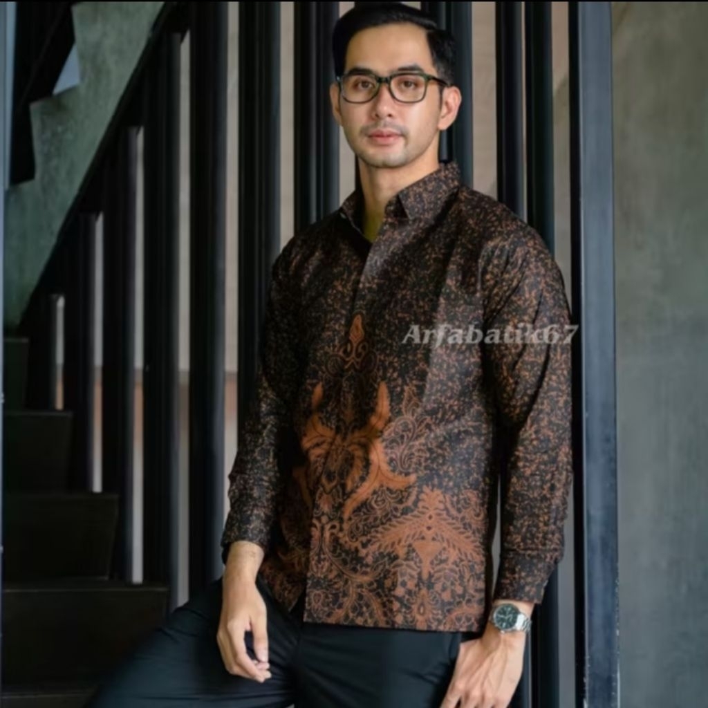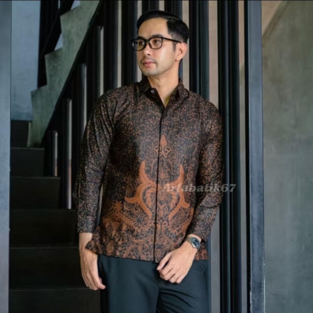 REMEKAN SOGAN KEMEJA BATIK PRIA KATUN SOLO PRINT MANUAL HAND MADE LAPIS FURING KATUN HERRO (ADEM)