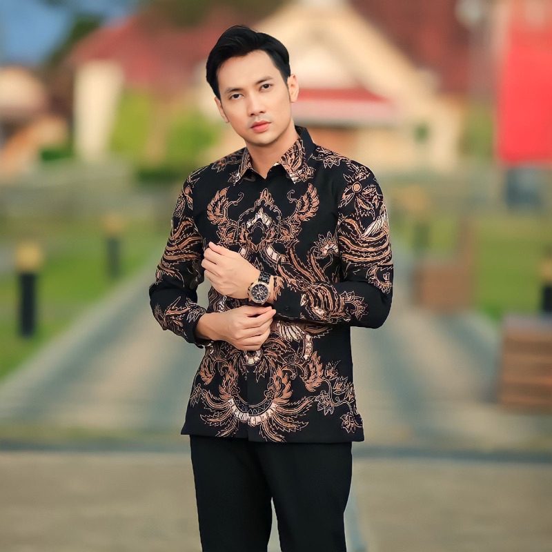 Kemeja Batik Pria SlimFit Premium Motif Nuri Sogan Lengan Panjang Lapis Furing