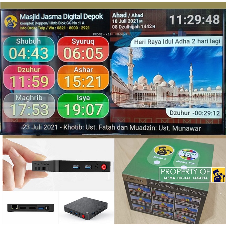 Jasma Versi Pro Jam Waktu Sholat TV LED Untuk Masjid dan MushollaTanpa Internet Canggih dan ern
