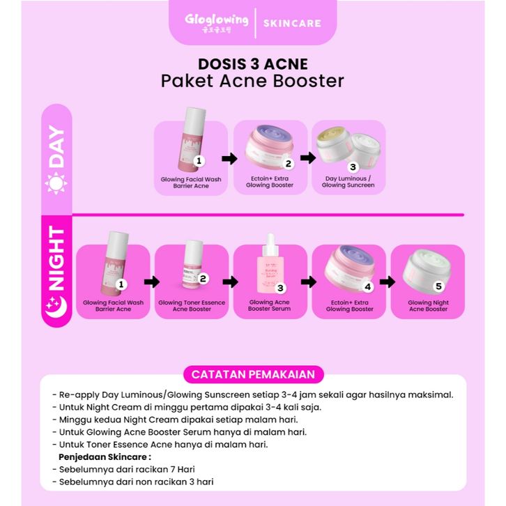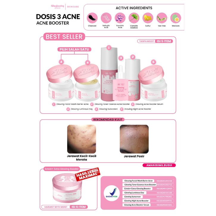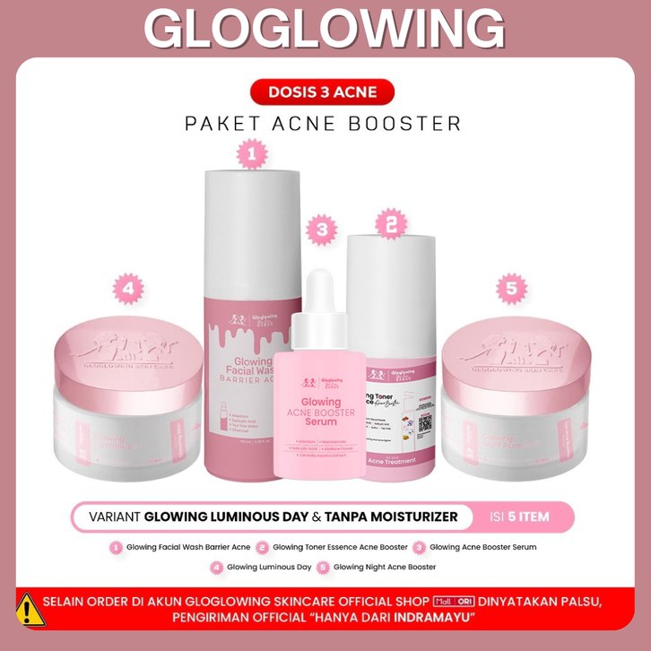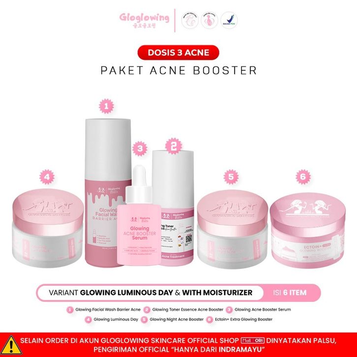 [Mall] GLOW GLOWING OFFICIAL DOSIS 3 ACNE Paket Acne Booster Skincare Wanita Glowing BPOM GLOGLOWING OFFICIAL ORI