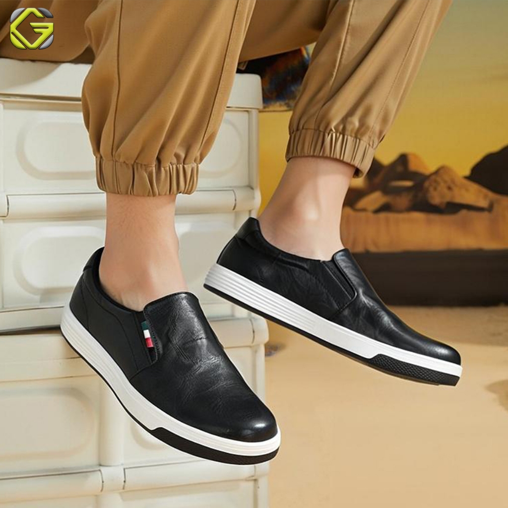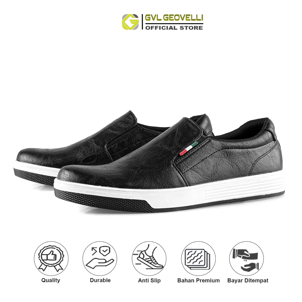 GVL Geovelli Black Natural | Sepatu Sneakers Pria Slip on Sepatu Kasual Pria Hitam Ukuran 39-43