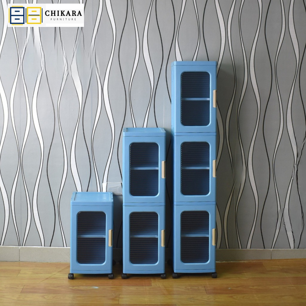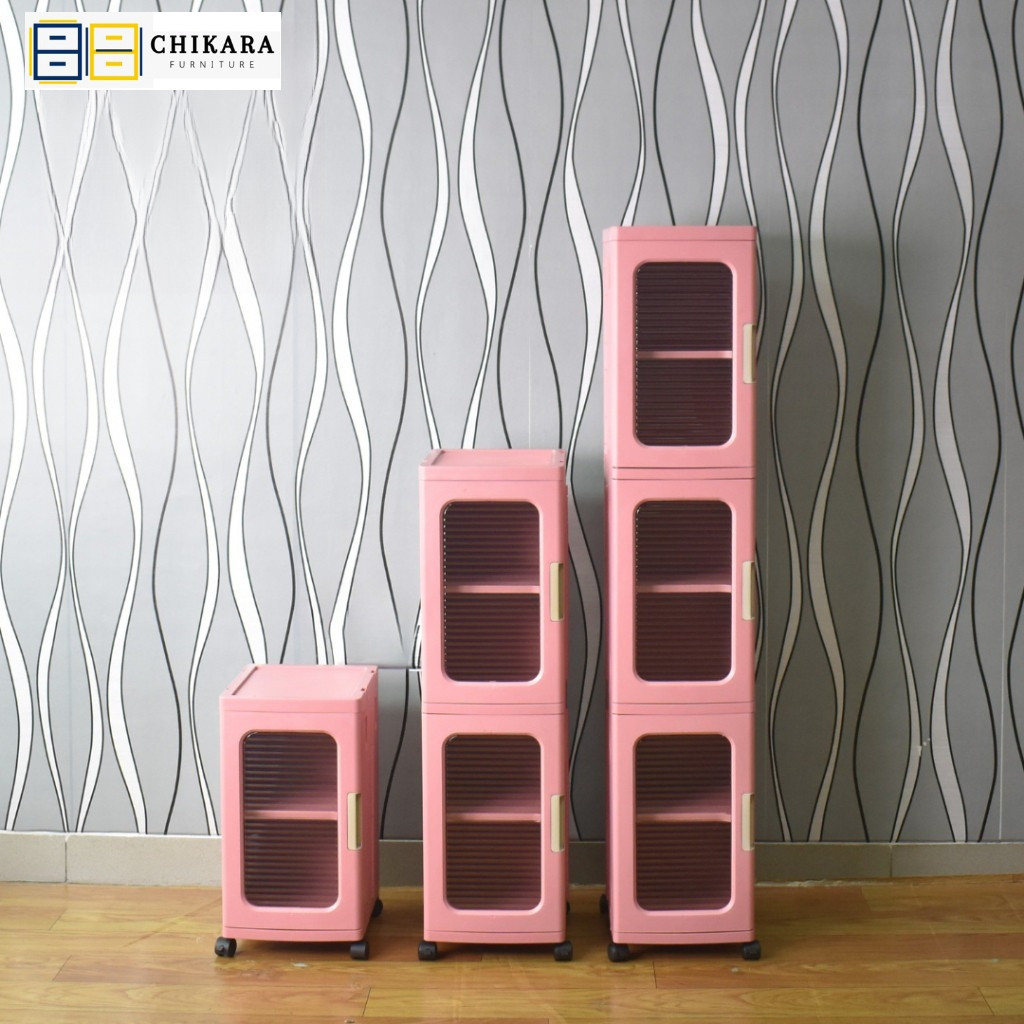 CHIKARA Lemari Lipat Susun Plastik LEORA Lemari Pakaian Lemari Serbaguna Rak Buku Dengan Roda