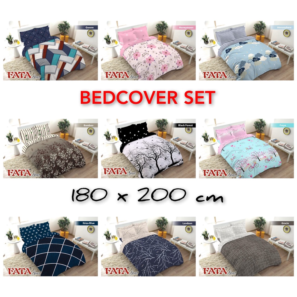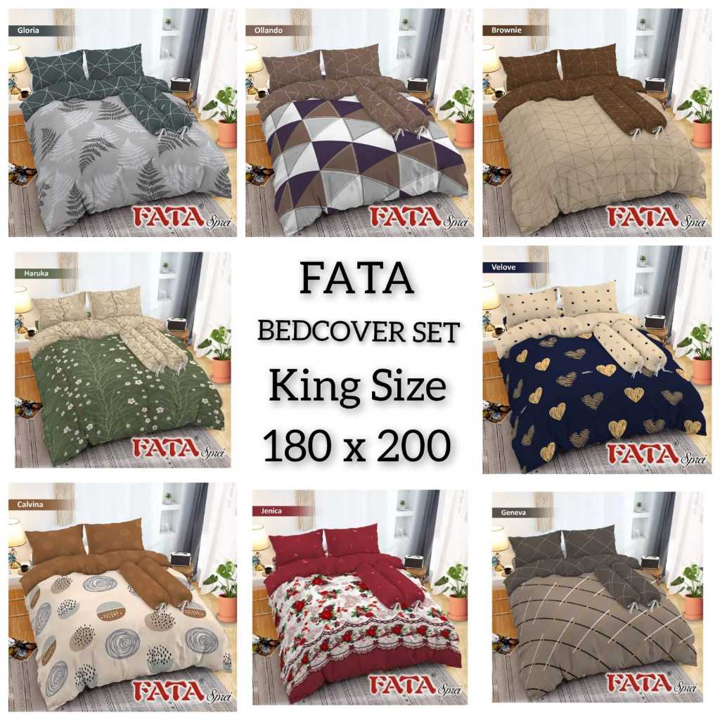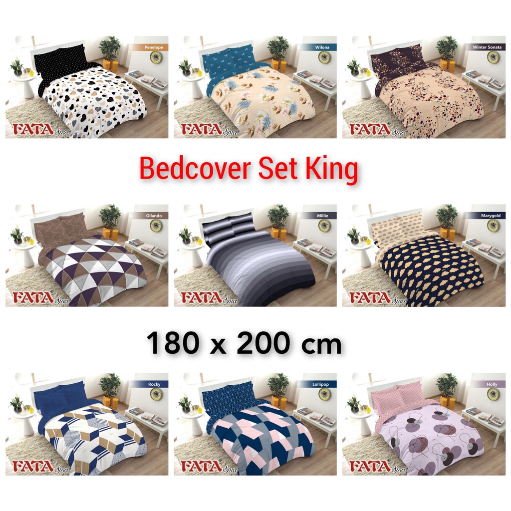 Bedcover FATA Motif Set King 180x200x20 Tinggi Kasur 20 cm Kasur No.1 Anti Slip Anti Geser Double Karet Bed Cover FATA