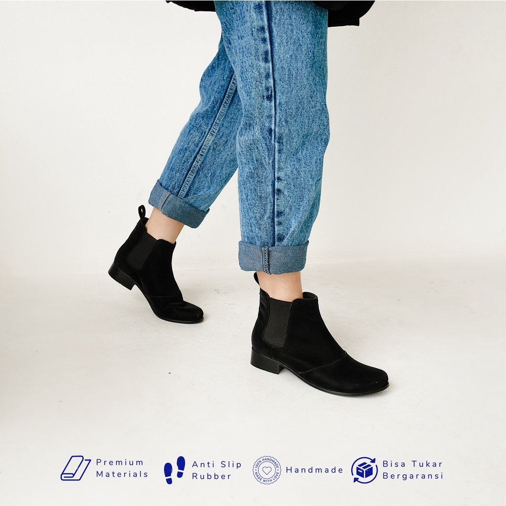 La Vita E Bella Chelsea Sepatu Ankle Boots Unisex Wanita Pria Musim Dingin Elastik tinggi 3cm [LU 1001]