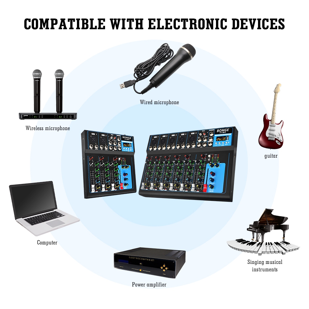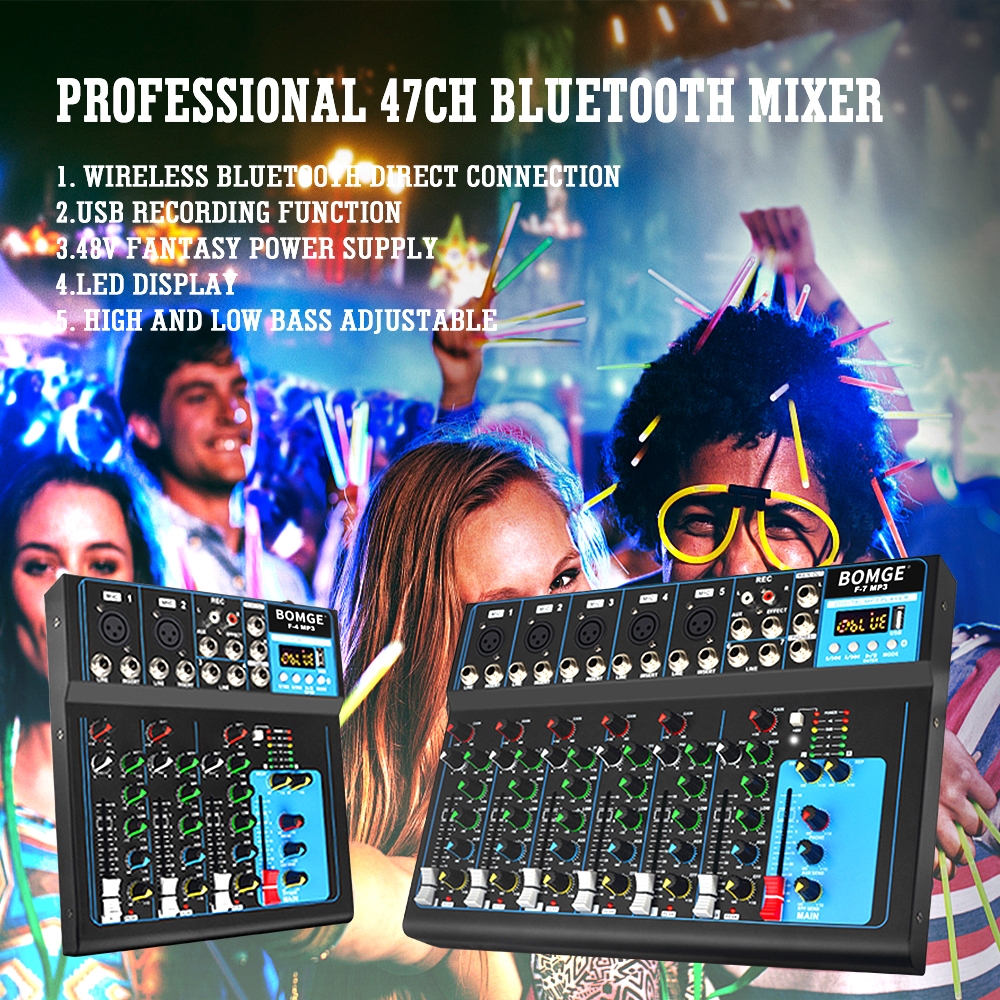 BOMGE F7 Audio Mixer 17V AC USB DJ Sound Mixing Console MP3 Jack 48V Power SoundCard Mixing Console MP3 Jack 48V Power f