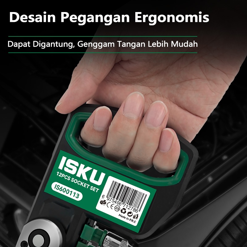 ISKU Kunci Shock 12Pcs Drive Socket 1/2 Inch Socket Wrench Set 8-24mm Dan 10Inch Extension Bar Bahan Chrome Vanadium Kun
