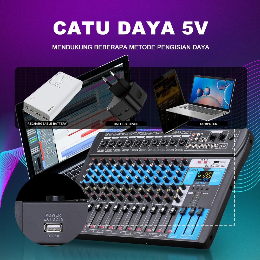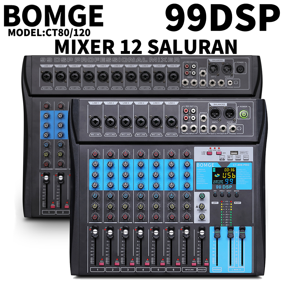 BOMGE 12channel mixer audio soundcard 48V Power Studio Audio Mixer Console with Bluetooth USB dj mixer,dj equipment DJ S