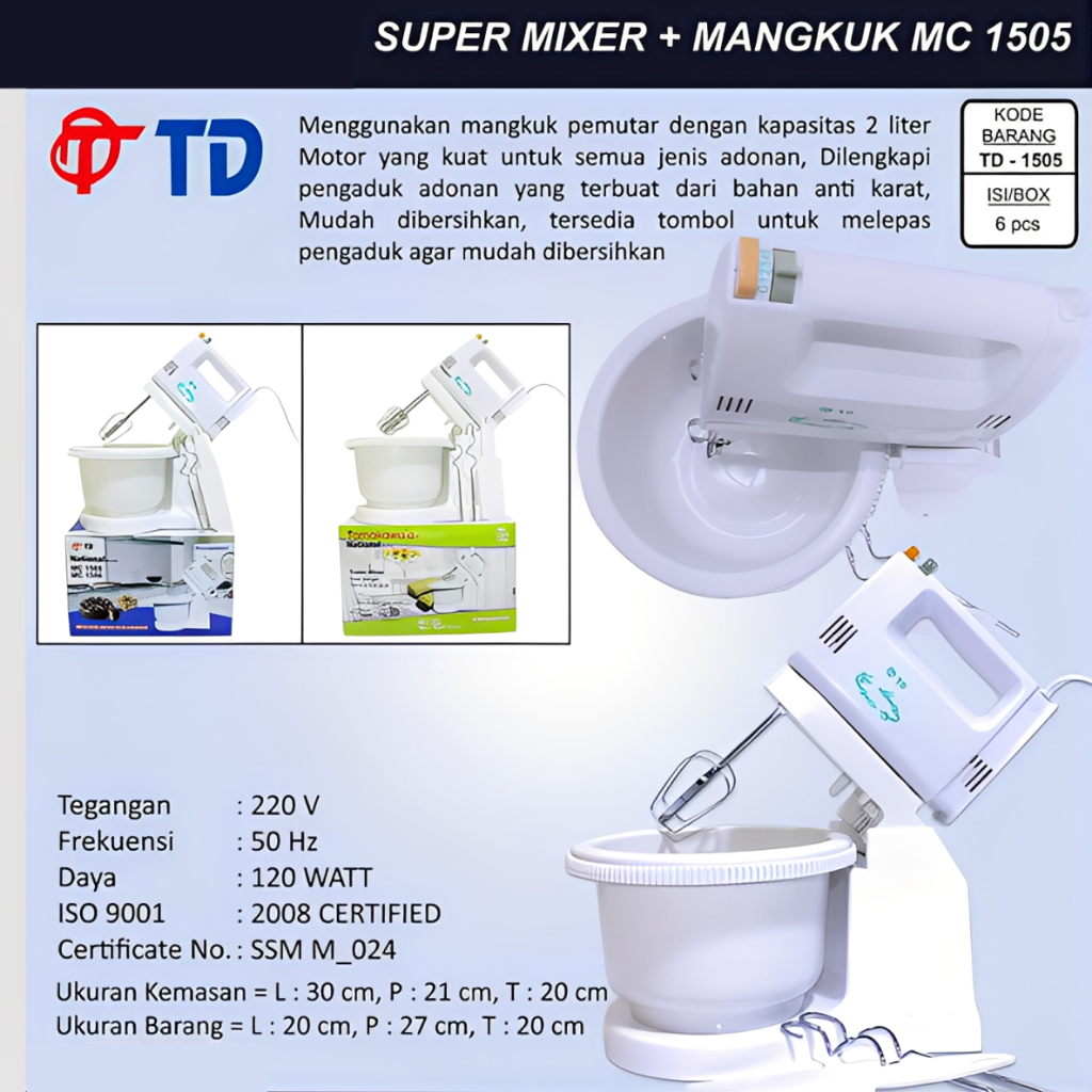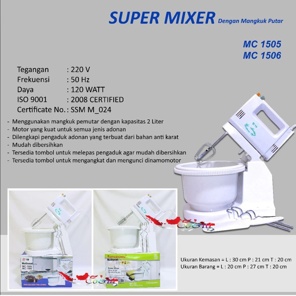 MC 1506 Mixer Dengan Mangkok Putar National Alat Membuat Kue Bisa Mikser / Mixer Pencampur / Mixer Kue - 2 liter / Mixer