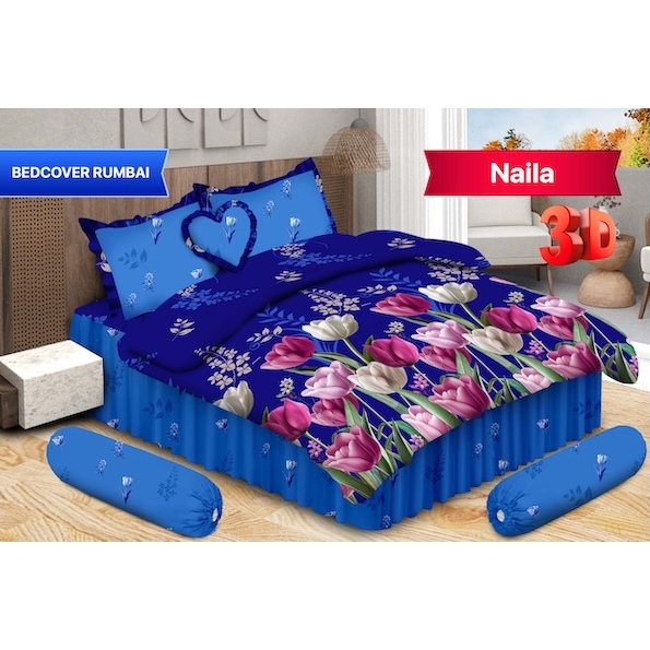 BED COVER BONITA RUMBAI 1 SET Uk. 180x200 tinggi 45cm - MOTIF TERBARU - BONUS BANTAL HATI
