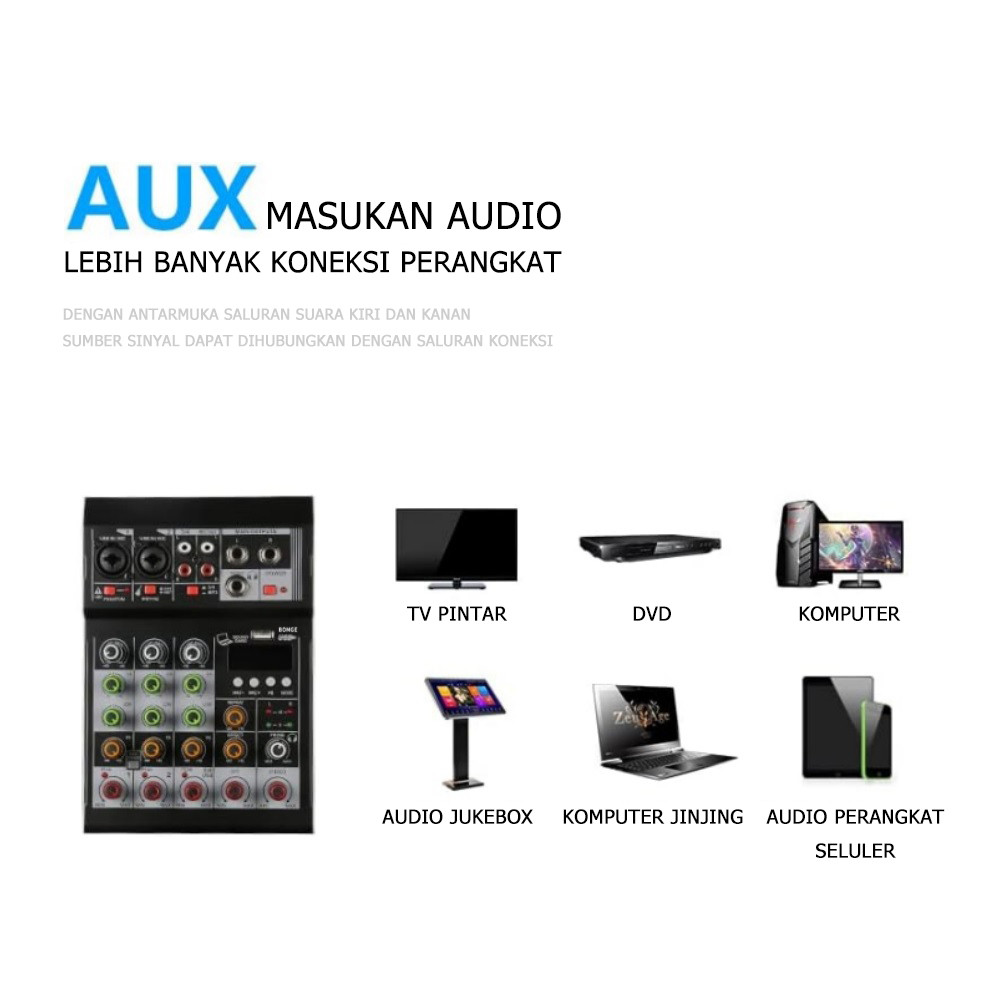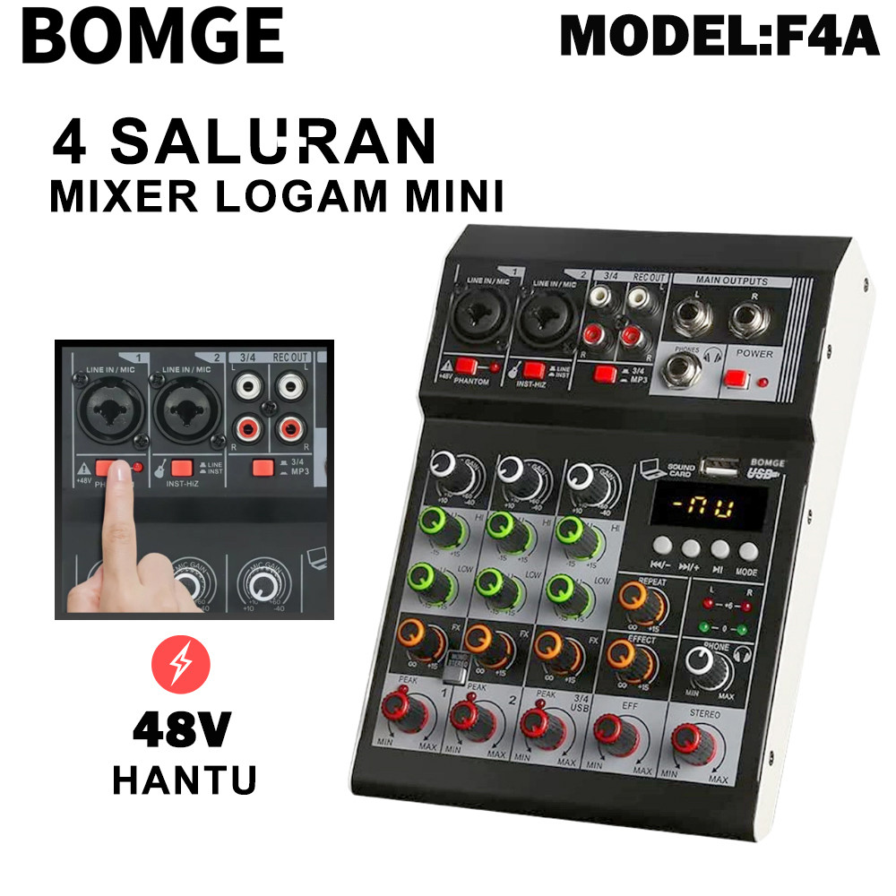 BOMGE Audio Mixer 4 Channel Mini Audio Mixer SoundCard DJ controller Mini Family KTV karaoke mixer USB/BT Effects Interf