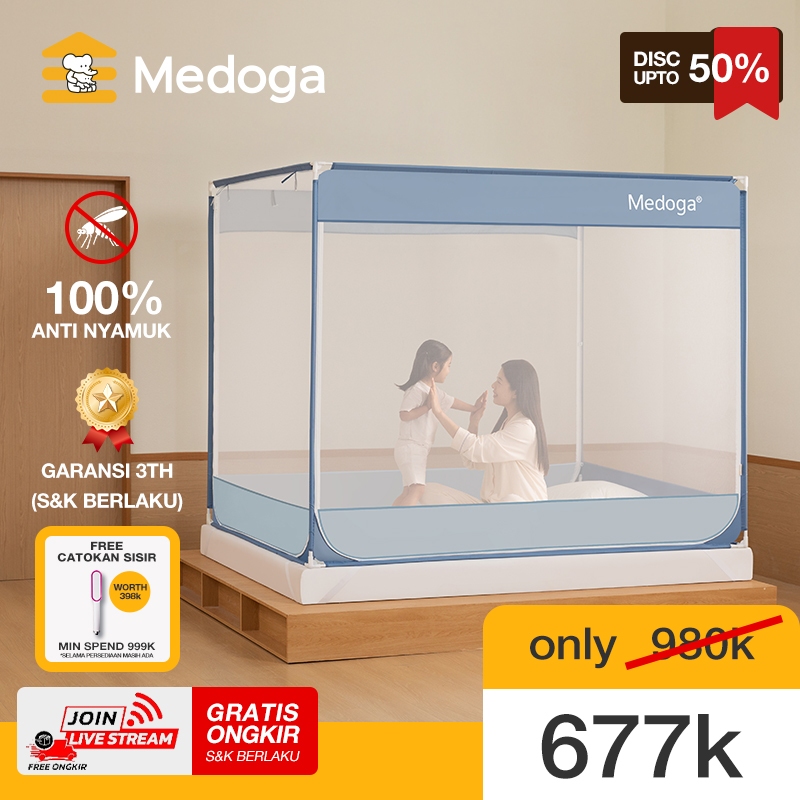 Medoga Kelambu Tidur Polos Anti Jatuh & Anti Nyamuk – Bayi, Anak, Dewasa – Aman & Kuat 120 160 180 200